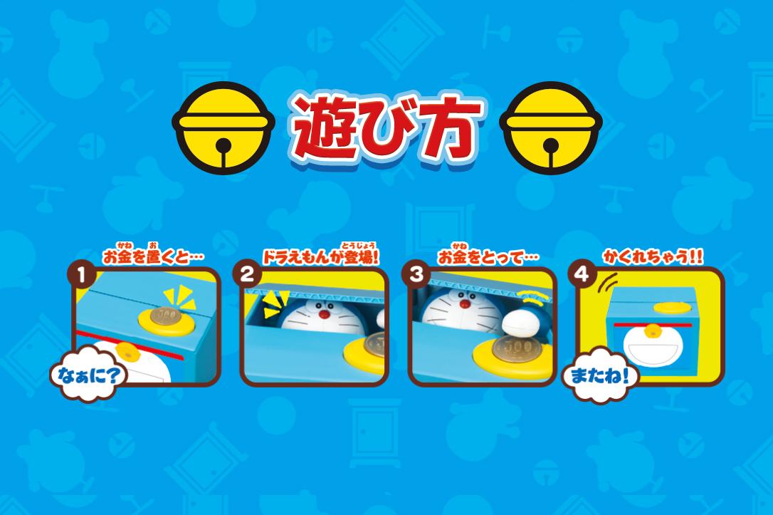 コインを入れるたびにドラえもんが動いて楽しいセリフをしゃべります♪