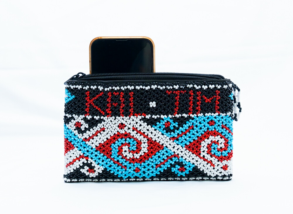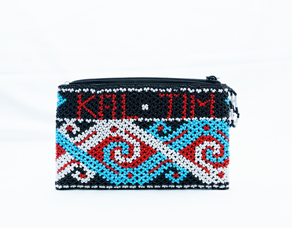 【本場 KAL TIM】インドネシア ダヤック 総ビーズ ミニポーチ コインケース アクセサリーケース 伝統工芸 東カリマンタン 民族柄 エスニック アジアン雑貨 幾何学模様 ブルー ブラック レッド 1点もの ハンドメイド ギフト