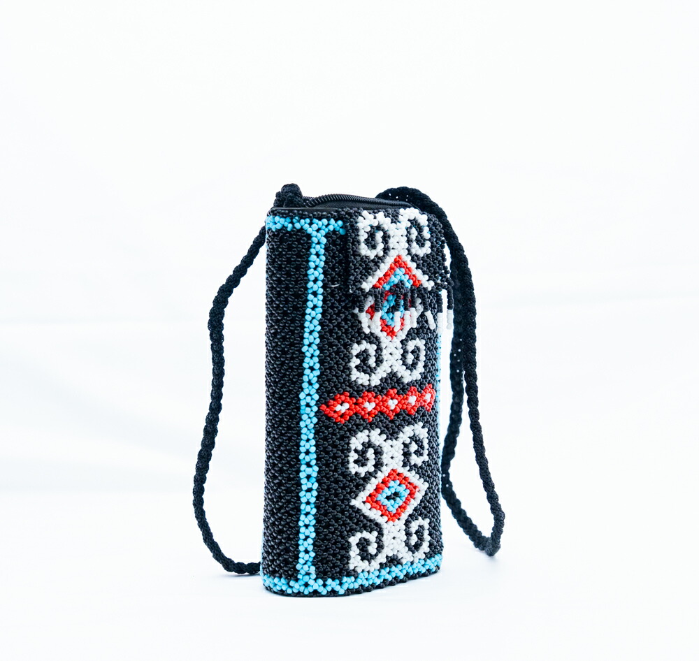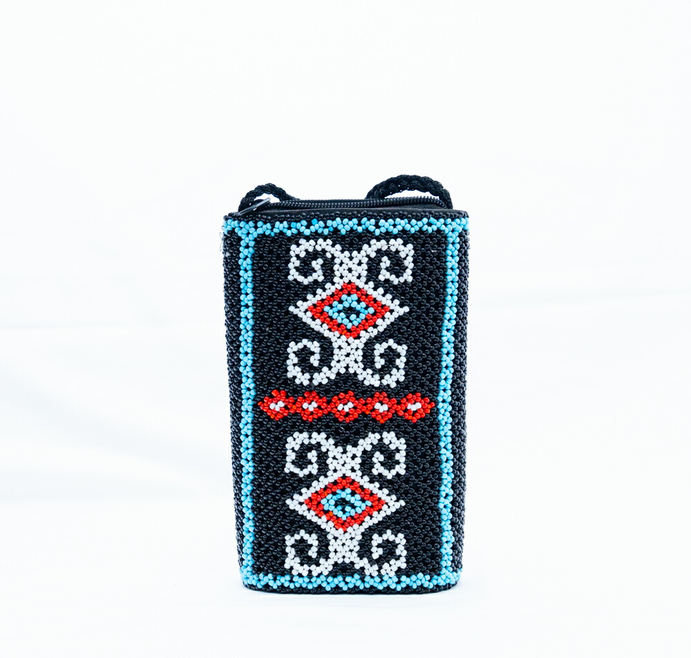 インドネシアの先住民族ダヤック族による伝統的なビーズワーク技法で丁寧に制作されたスマホショルダーポーチです。