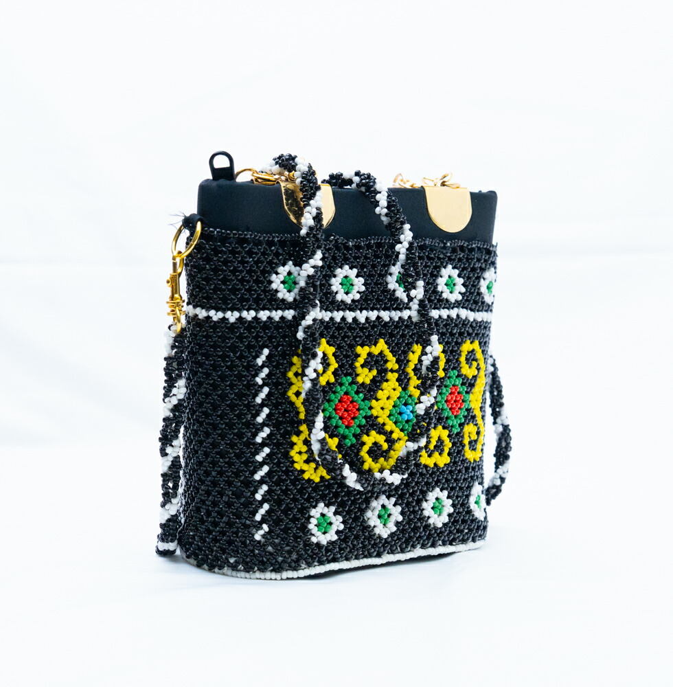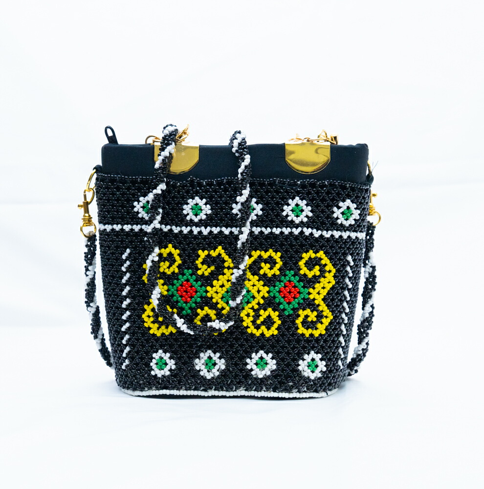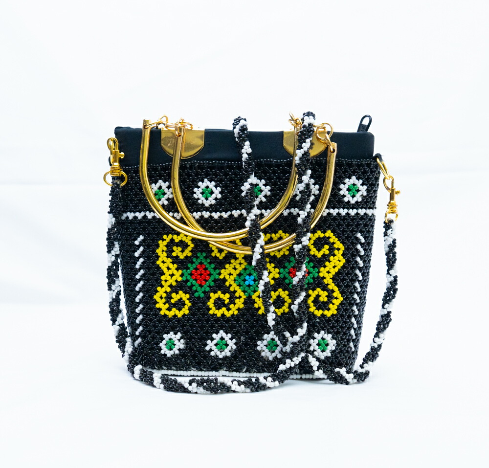【極上ビーズワーク】インドネシア ダヤック ビーズバッグ 2way ゴールドハンドル ハンドバッグ ショルダーバッグ 総ビーズ 民族柄 エスニック アジアン雑貨 幾何学模様 パーティーバッグ フォーマル 1点もの ハンドメイド ギフト 贈り物